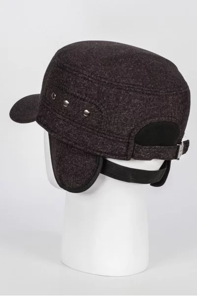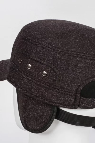 Сшита из теплой ткани с меланжевым переплетением. Плотная, хорошо держит форму. Подклад из флиса, с откидными ушами. Подойдет на холодную осень. Размер дополнительно регулируется ремешком сзади.